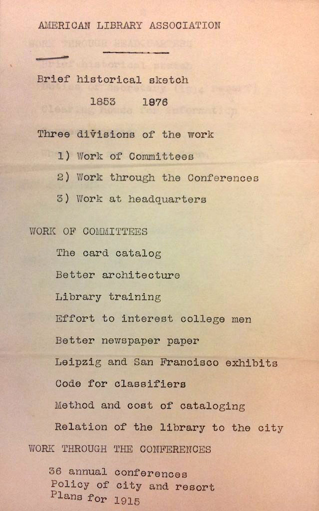 Mr. Utley’s early librarian experiences may have been formative on his interest in preserving the early history of the profession. During his first library position at the Maryland Diocesan library, Mr. Utley regularly wrote about local collections which included incunabula, local history, and theology. Later, as the second Secretary of the ALA, from 1911 until 1920, Mr. Utley again wrote and spoke about the history and role of the ALA in librarianship. Extant drafts of his ALA speeches begin with histories of either the ALA or the library profession.