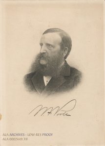 Early professional library organizers include Frederick Leypoldt (editor and publisher of Publisher’s Weekly), Melvil Dewey (librarian of Amherst), and Richard Rogers Bowker (Leypoldt’s business partner). While Mr. Leypoldt and Mr. Bowker had been planning an editorial to urge a professional library conference, independently, Mr. Dewey had been arranging a professional library journal. It was middle May when the three men met and their interests converged. Together, they sought the signatures of leading librarians to endorse the call for a conference at an undetermined date in 1876.