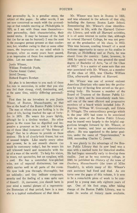 (R. R. Bowker; Florence M. Cushing; Melvil Dewey; Charles Evans; William E. Foster; E. Fannie Whitney; Walter Biscoe; Walter Harden; Caroline M. Hewins)