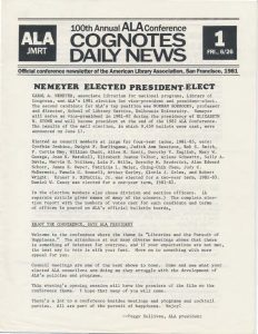 Behind the headlines has stood a skilled volunteer crew and current ALA Archives holdings do not include all of those names. Were you (or somebody you know) a member of COGNOTES? We welcome you to share your part of ALA history in the comments or to contact us. We and our readers would like to hear from you.