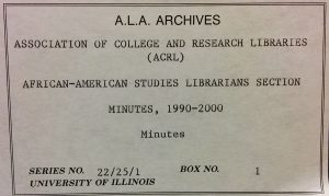 If you are looking for information about African American studies at the library, then why not also look into the information professionals who organize and provide access to African American studies at your library? The ALA Archives is fortunate to have the newsletters, subject files, meeting minutes, and committee files of the African American Studies Librarians Section of the Association of College and Research Librarians (ACRL).