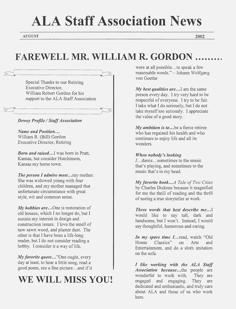 Finally, in the early 2000s, ALA Staff Association News became the new publication with a new look too. Issues were multiple-paged and included the first color photographs too.