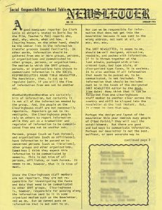* Research tip: Organizational publications about social issues, like the SRRT Newsletter, can also be rich with perspectives on their own organizations and the history of their peers. For example, when there is not published research into the history of an office, a unit, or an organization, sometimes, researchers can utilize criticisms and reviews as sources for history and for identifying key people too.