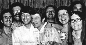 Janet Cooper and Israel Fishman met in 1970 at the ALA Annual Conference in Detroit at the Social Responsibilities Round Table session, and decided to form an official gay and lesbian caucus at ALA. The Task Force on Gay Liberation would be the first of its kind in any national professional organization. It formed in a climate of social and political protest including the anti-Vietnam War movement, the civil rights movement, the women’s liberation movement, and the gay liberation movement in the wake of the Stonewall Riots in 1969. Barbara Gittings, a self-described “full-time gay activist,” got involved in the Task Force soon after its formation and began compiling the first Gay Bibliography, a list of gay-positive books and information resources.