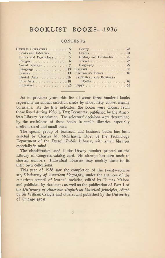 During the second half of the 1930s, at least one more guest author would contribute to the project before the publication ended in 1940. That year was 1936, when Detroit Public Library Technology Department Chief Charles M. Mohrhardt contributed to the both “Technical Books” and “Business Books” from then on and until the end of the publication.