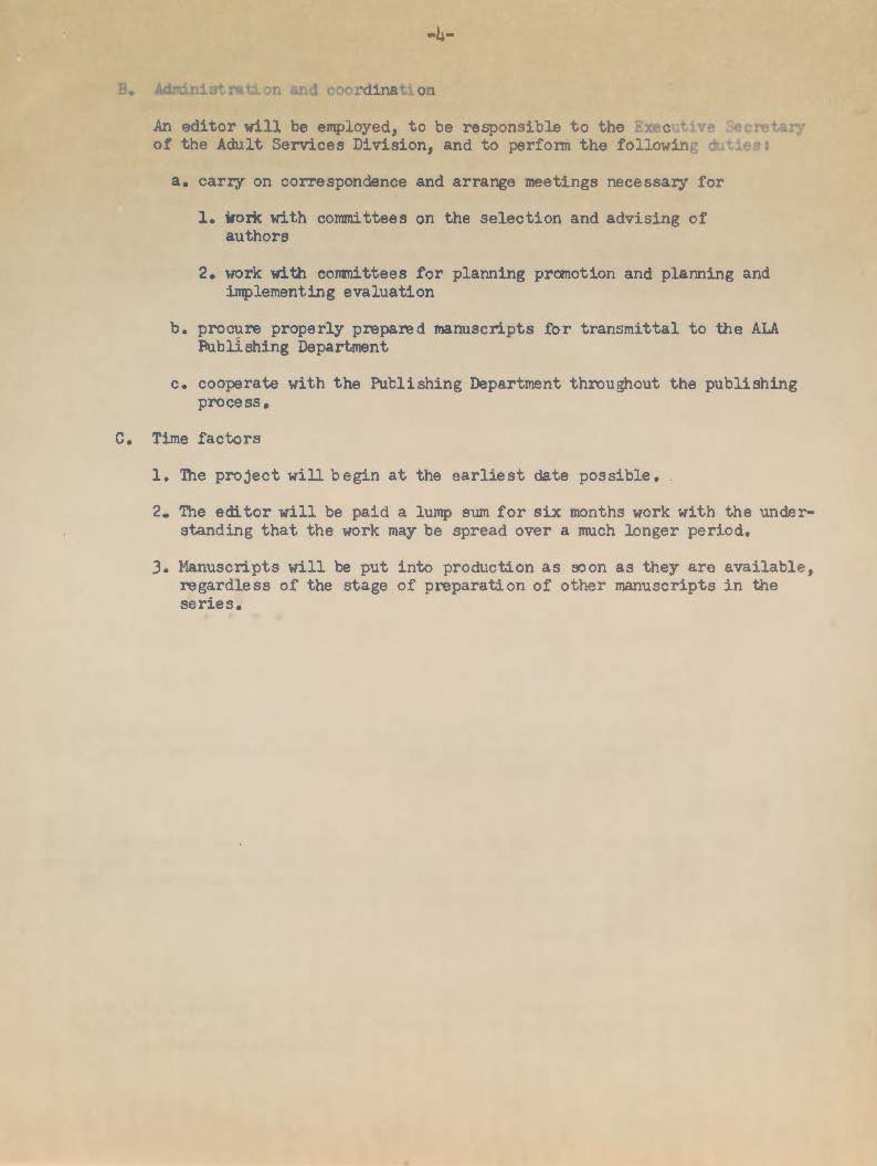 [1] The ASD Special Projects Committee included Chair Ruth Warncke, Lester Asheim, Margaret C. Hannigan, Russell Munn, and Lucile Nix, as well as Ex Offico members Margaret E. Monroe and Florence S. Craig.