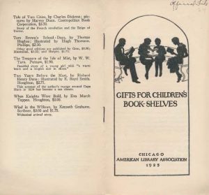 From 1922 until 1941, the American Library Association produced a series of bibliographies for children’s libraries known as Gifts for Children’s Book-Shelves. Each installment is rich with the experienced perspectives of children’s librarianship leaders of its time. Read on to learn more about Gifts for Children’s Book-Shelves!