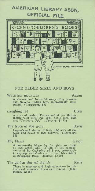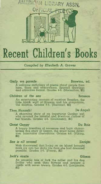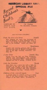 From 1925 through 1939, known under the series title Recent Children’s Books, the American Library Association produced a series of resources to support collection development in children’s libraries. Each publication is rich with recommendations of contemporary children’s literature. Read on to learn more about early Recent Children’s Books!