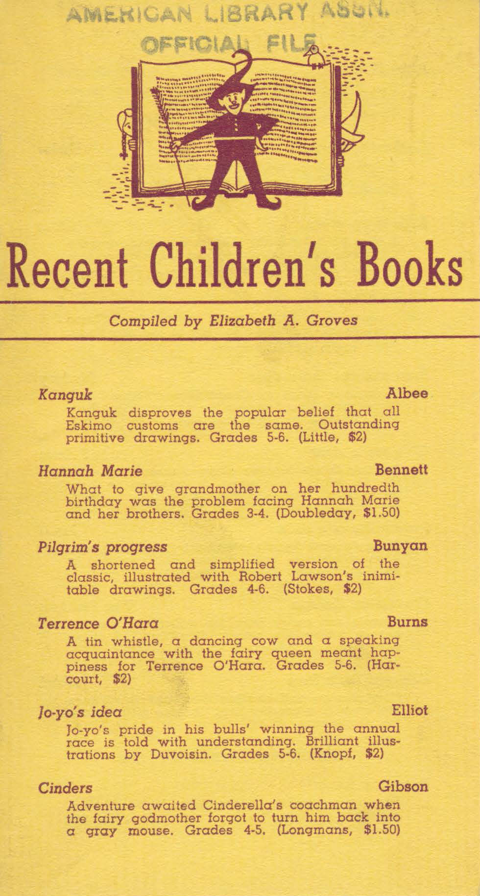 Physical copies of early Recent Children’s Books bibliographies are available for viewing at the ALA Archives. Please view the Record Series 24/33/15 database record entry, for more information.