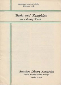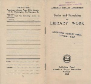 Also in 1921, the first Books and Pamphlets on Library Work was published, and it included a 15-page catalogue with an order form on the last page too. The publication continued annually for decades.