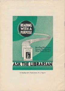In 1925, the first significant layout change occurred. The now 29-page pamphlet include images from commissioned artists, including Harvey Dunn’s iconic “Develop the Power that is Within You” poster and the Reading with a Purpose series. An index of titles was included at the end of every issue too.