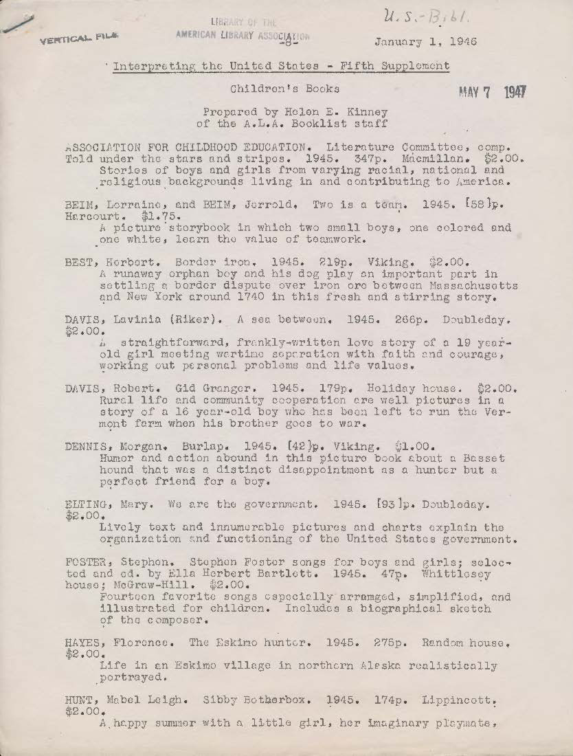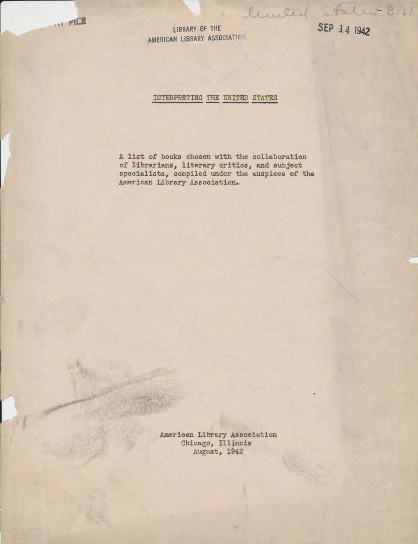 From at least 1942 through 1947, known under the series title Interpreting America, the American Library Association produced a series of lists to support reading about cultures, histories, and politics of people in the United States. Each installment is rich with recommendations of contemporary writings on the peoples of the USA. Read on to learn more about early Interpreting America!