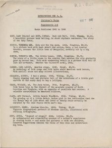 In fact, separate lists of children’s book lists were published too, with at least as many as eight supplements, featuring the compiling work done by Helen E. Kinsey (The Booklist) and Elizabeth A. Groves (Winnetka Public Library).