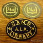 There were two main styles of uniform in use by the ALA volunteers, the main style for camp librarians in green wool, with versions for men and women, and the hospital style in natural-colored pongee fabric. The women’s uniforms were made by Best & Co. of New York City and men’s uniforms were made locally by a tailor, with official ALA-issued accessories of brass pins and an embroidered patch for all librarians.