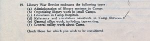 After being in the hospital library service for several months, librarian Jacqueline Overton echoed the importance of the work being done by the hospital librarians by describing her own experience in reading aloud to a wounded soldier: