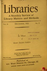 Festschrifts are a common way to honor someone in academia, and line the shelves of many academic libraries. They typically contain academic essays related to the person’s life work, contributed traditionally by the person’s former doctoral students and colleagues. But what about a Festschrift that’s instead full of nothing but praise for the person being honored gathered from common workers in their field, and furthermore isn’t for an academic, but instead for a public-service librarian? This is the final issue of Libraries magazine, honoring one Mary Eileen Ahern. Continue reading “Miss “Public Libraries” Mary Eileen Ahern”