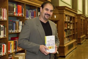 Florin Dolcos holding The Emotional Life of Your Brain: How Its Unique Patterns Affect the Way you Think, Feel, and Live – and How You Can Change Them by Richard J. Davidson