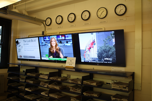 In an effort to encourage library users to engage information more fully, the Communications Library has created a News Lounge. We believe today’s users should have access to international news – not just news broadcast in the U.S. from a U.S. perspective—but world news as it is viewed from non-American eyes. Such a mutuality of perspectives encourages further critical awareness, a globally sensitive competency and appreciation that is essential to an increasingly multicultural world view.