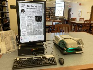 - Newspapers on microfilm typically include original formatting but do not allow for key word searching – you read/scan the paper on film like you would read a physical newspaper