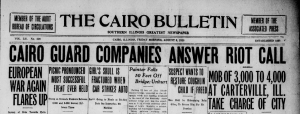 [2] “Mob of 3,000 to 4,000 at Carterville, ILL Take Charge of City,” Cairo Bulletin (Cairo, IL), Aug. 6, 1620.
