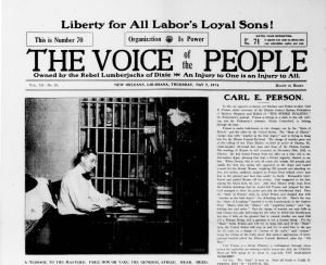 The Voice of the people. [volume] (New Orleans, La.), 07 May 1914. Chronicling America: Historic American Newspapers. Lib. of Congress. <https://chroniclingamerica.loc.gov/lccn/sn88064458/1914-05-07/ed-1/seq-1/>The May 5, 1915 edition of the Strike Bulletin included a notice explaining that the ongoing legal action by the Illinois Central Railroad had impeded their work on the previous week’s edition. Person wrote, “The boycott placed on the Industrial Relations Commission…has handicapped us to such an extent we were unable to publish same this week. However, every effort is being made to have this edition ready for circulation next week.”