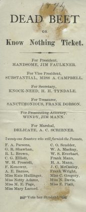 [6] “Constitution and Laws of College Government,” ca. 1875, Allen Family Papers (41/20/21), B: 2, F: I.I.U. Student Goverment Tickets, University of Illinois Archives.