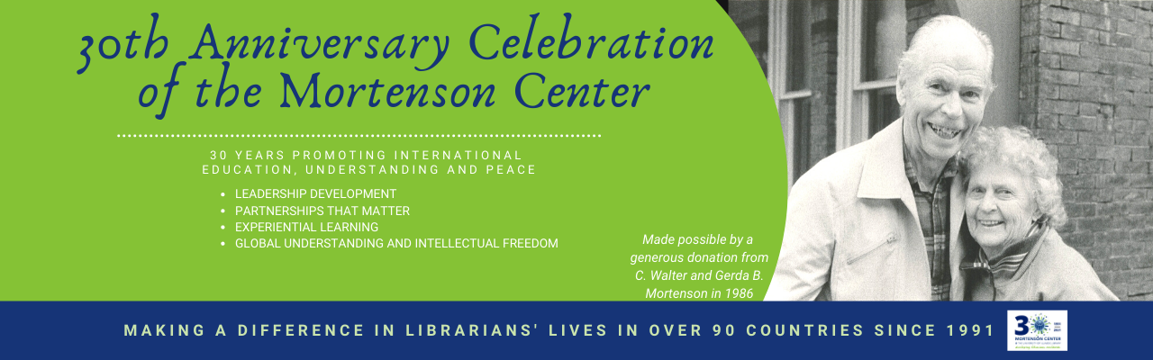 The Mortenson Center for International Library Programs strengthens international ties among libraries and librarians worldwide for the promotion of international education, understanding, and peace.