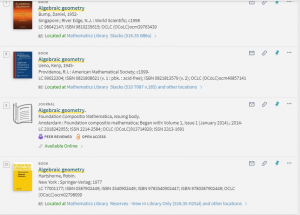 For more detailed guidance on using the library catalog, including topics like advanced searching and I-Share, you can visit this LibGuide on the topic. You can also e-mail us at math@library.illinois.edu.
