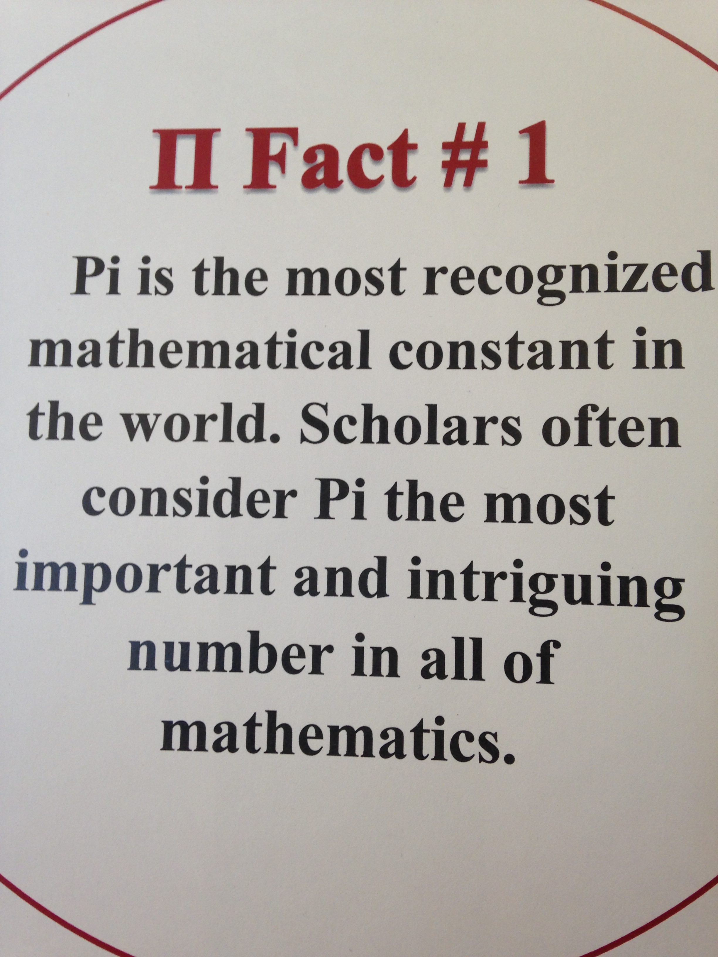 Pi Day Exhibit, Fun Fact 1