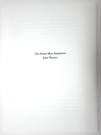 This excerpt from John Warner's The Funny Man was printed by Steve Kostell and Marten Stromberg in collaboration with the author. It was produced as part of the Carr Reader series.