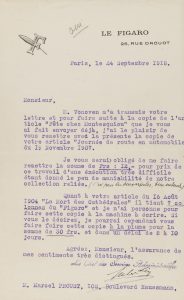 Letter from Le Figaro to Marcel Proust, 24 September 1918 [1]