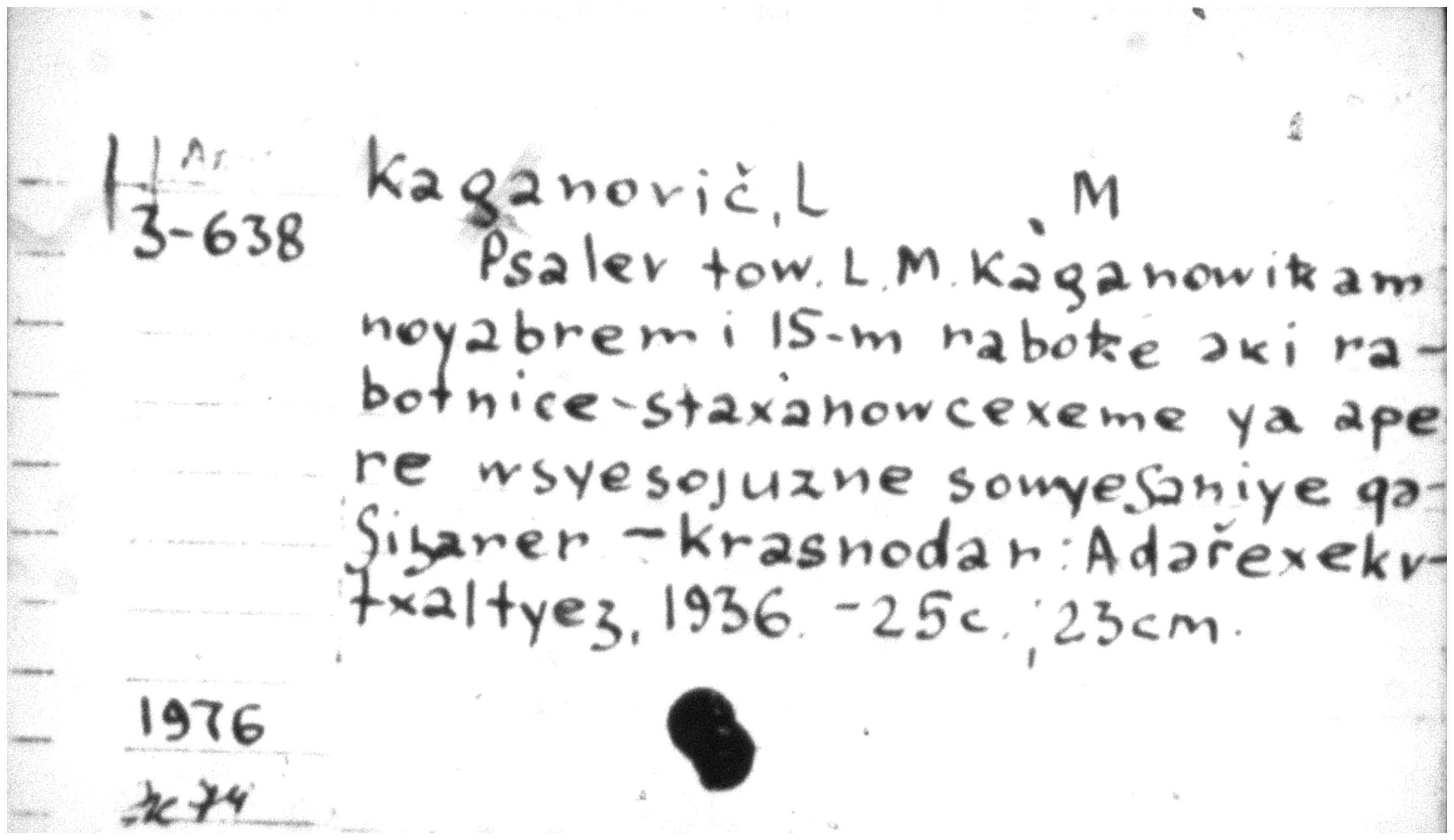 The Russian National Library’s Department of Literature in National Languages [also known as the Department of National Literatures] of the Russian Federation, Commonwealth of Independent States, and the Baltic countries has reproduced holdings catalogs in microfiche format. The national languages imprints catalogs in microfiche format diffuse most of the difficulties associated with transliteration in the vernacular languages, spelling, forms of entry, and uncertainties with the entirety of the collection. Researchers can access the entire holdings for a specific language at the Russian National Library through the microfiche set; conveniently exporting selected titles via PDF scans. The following scans reflect some of the Adygea language holdings available in microfiche format. As can be seen there are records in both Cyrillic and Latin script.