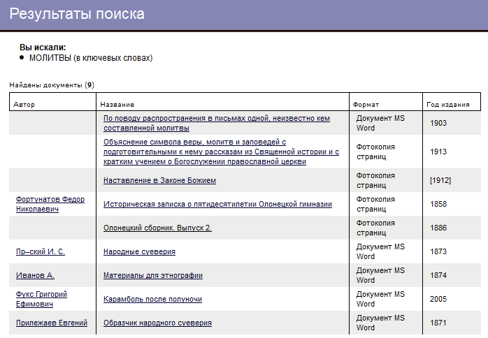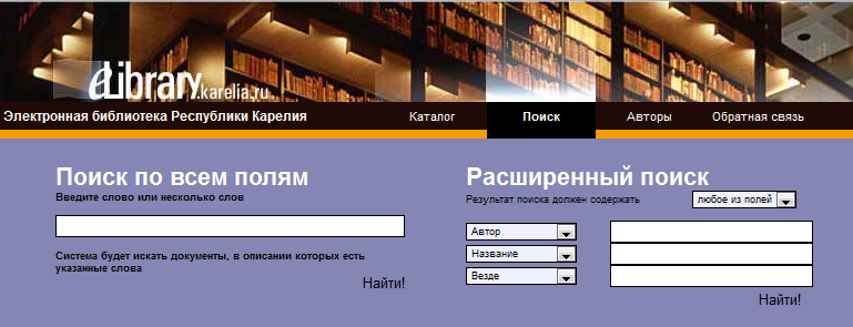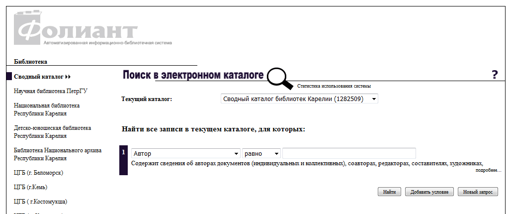 - An electronic catalog that allows users to search the collection of the Scientific Library of the Karelian Academy of Sciences