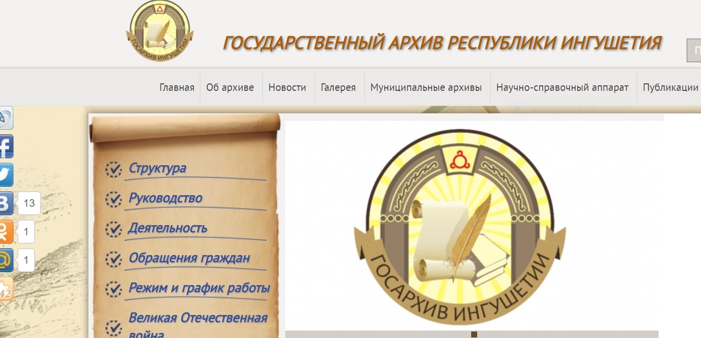 The State Archive Service of the Republic of Ingushetia was formed on July 19, 1993. Today it has more than 60 collections with approx. 29,000 items of archival documents. Additionally, it works on building collections of print and non-print materials dedicated to the history of Ingushetia. The Archive’s website contains contact information for municipal archives and lists of the State Archive collections (as of 2017, 2018, 2019). Each list provides a title, a short description of a collection and dates of the documents in the collection.