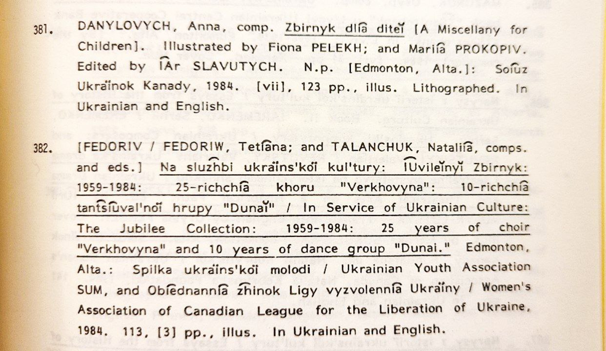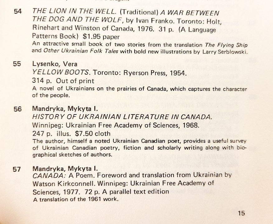 Included in An annotated bibliography of Ukrainian literature in Canada: Canadian book publications, 1908-1985 listed above.