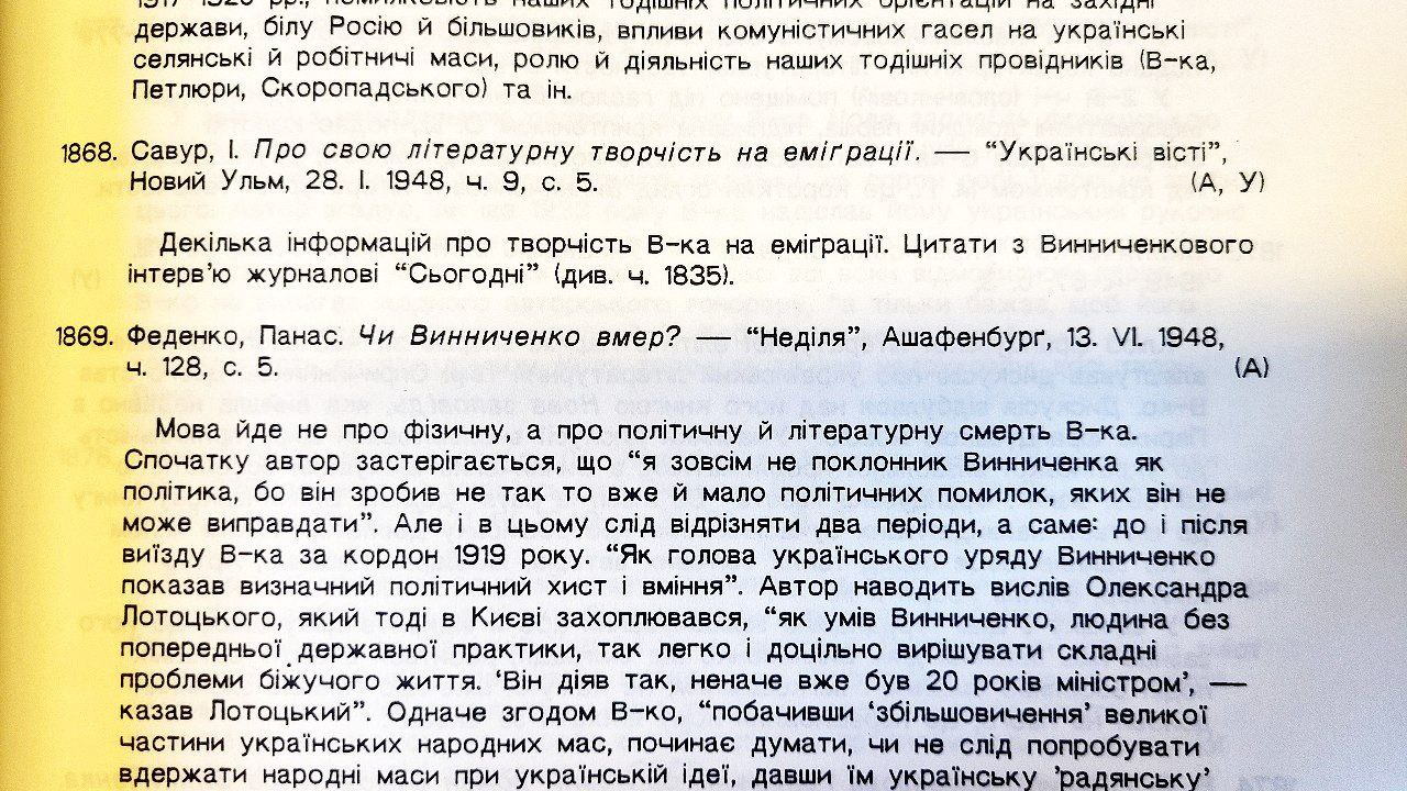 Volodymyr Vynnychenko: anotovana bibliohrafiia