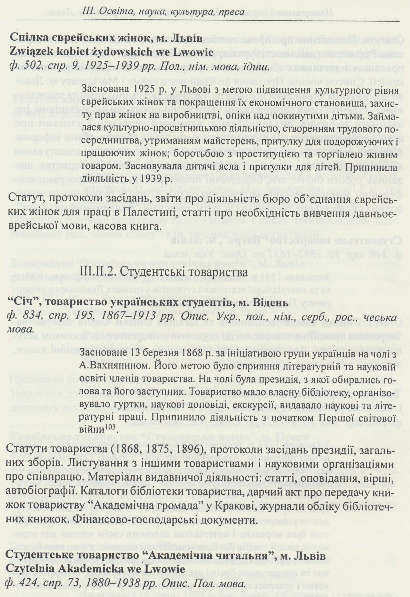 - Tsentral’nyi derzhavnyi istorychnyi arkhiv Ukraïny, m. L’viv: putivnyk / [avtory-uporiadnyky Ol’ha Hnievysheva … et al. L’viv, 2001. 410 p.