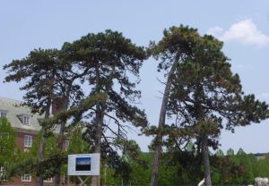 The Mumford House, which sits on the South Quad, is the oldest extant building on campus. However, it is NOT the oldest thing on campus – that honor belongs to the tall, stately Austrian Pine trees that stand on the east side of Fourth Street, from Armory to Pennsylvania. For a more detailed examination of the history of these remarkable trees, check out this 2019 blog post by University Archivist Emeritus Bill Maher!