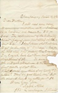 I will need some money to commence next term with. I will need $9 for room rent and incidentals. $10 for Board. The replenishment of the Laboratory deposits (fudging from past terms) will be about $6. I don’t know what I will have to get for the study of “Drainage.” And for the third study I will probably take English. The English book last term cost in the Neighborhood of $2. To sum up, $50 will cover all expenses to the end of the first month of Next term. What would you think of my taking Elocution? There is a good teacher here. But the students have to pay extra for it. $4.