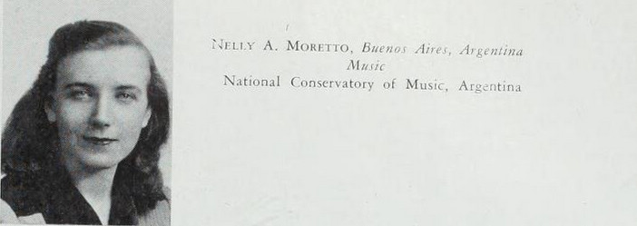 In addition to performances, Mrs. Moretto had at least two public opportunities to present Argentine cultures and history to the campus, including providing background music while her husband and other Argentine students gave talks on Argentina (July 1944) and a panel talk on Christmas in Argentina (December 1944).