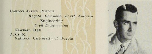 The Class of 1953 had as many as eight Colombian graduates; but, unfortunately not all students left detailed records behind. We know that there was a Mr. Ramirez Hector Fabio Gallo, (B.S. Electrical Engineering, 1953) and a Cesar Julio Granados, (B.S. Electrical Engineering, 1953). We know that Mr. Jaime Euleta Gonzalez, (B.S. Electrical Engineering, 1953) participated in a Latin Quarter Review student show at the off campus Y.M.C.A. in November 1951. We also know that Mr. Alfonso Galvis, (B.S. Electrical Engineering, 1953) lost his topcoat in November 1951, as listed in Daily Illini “Lost and Found” advertisements (November 6, 8, 9, and 10).