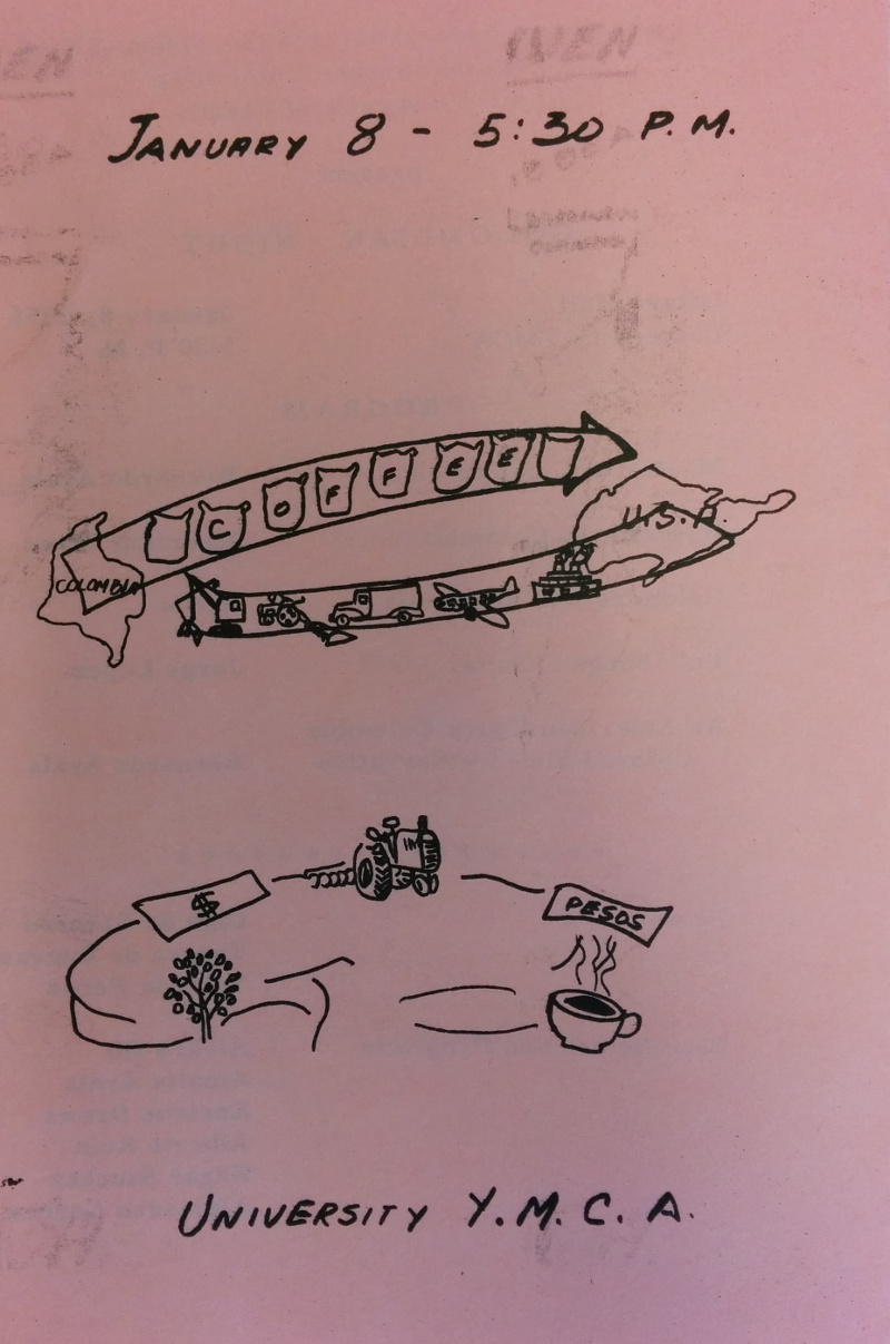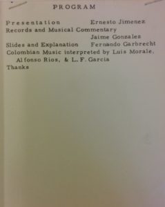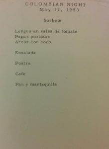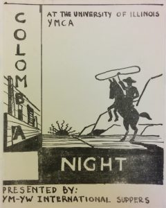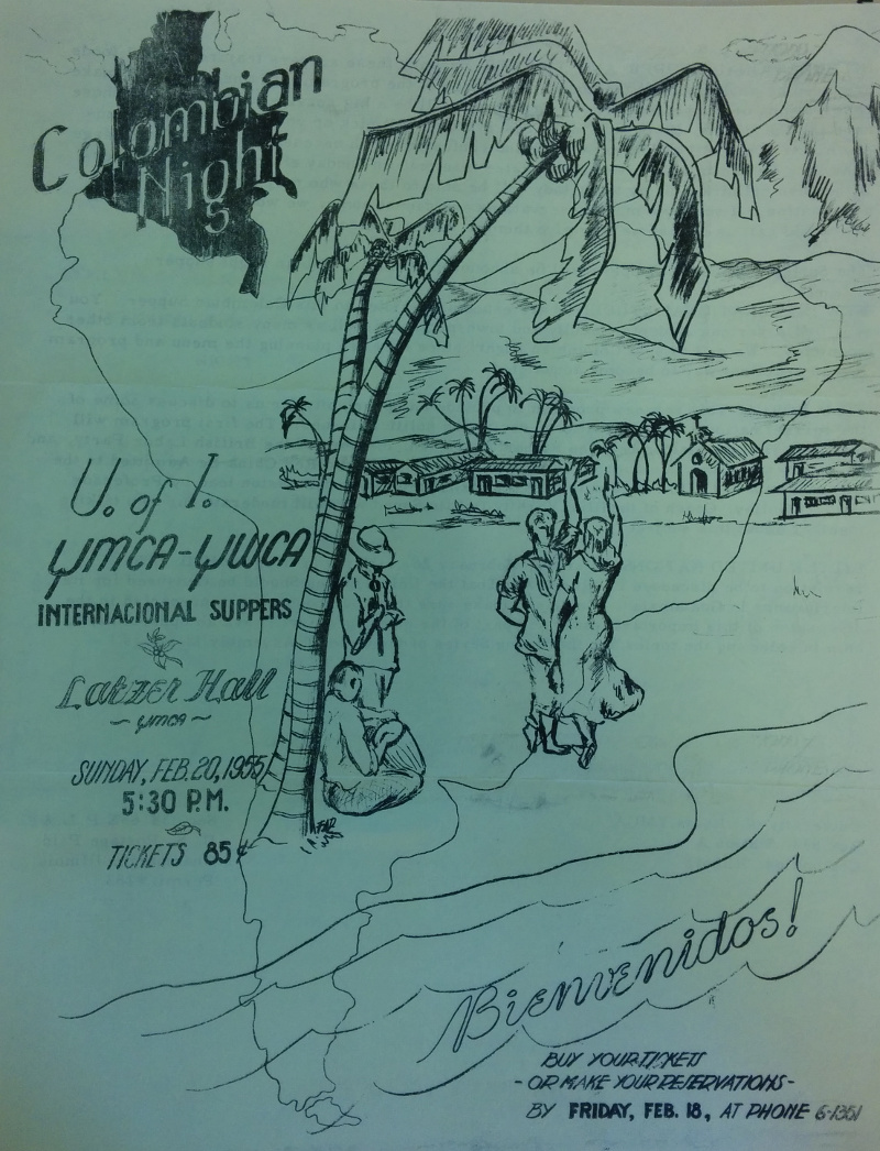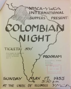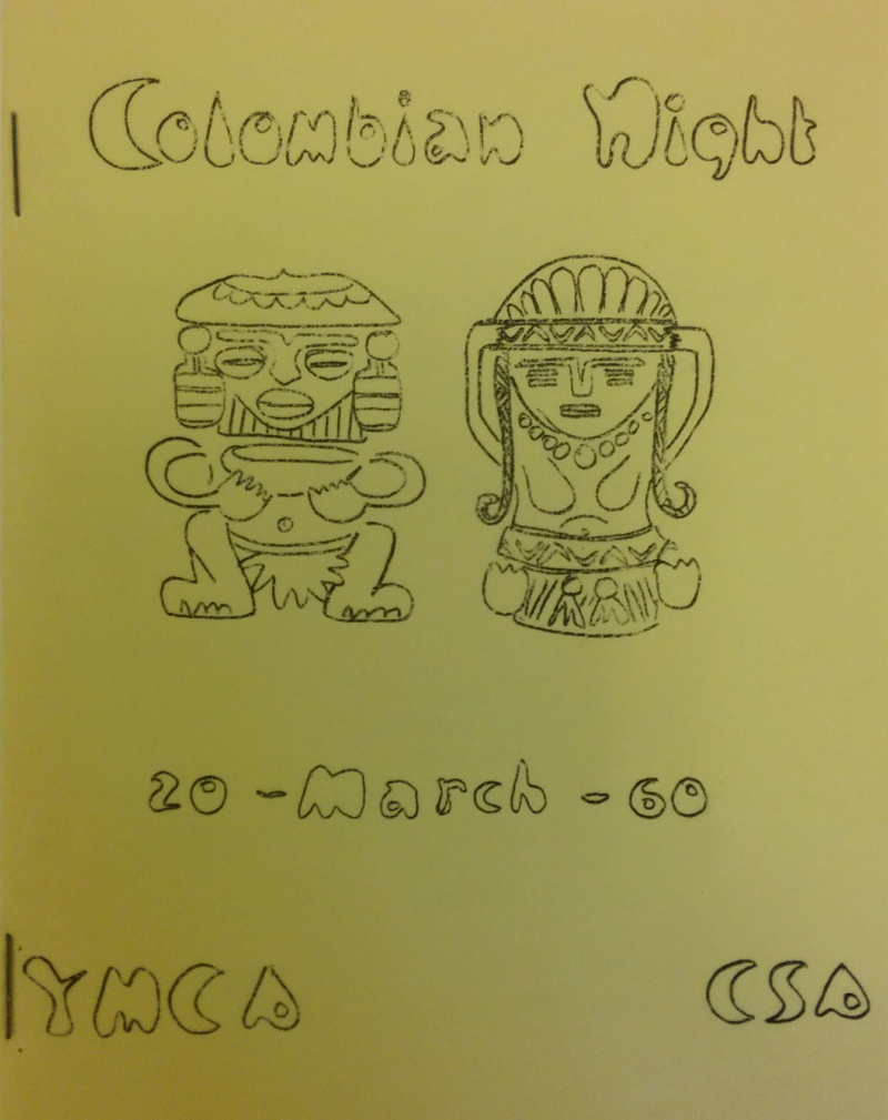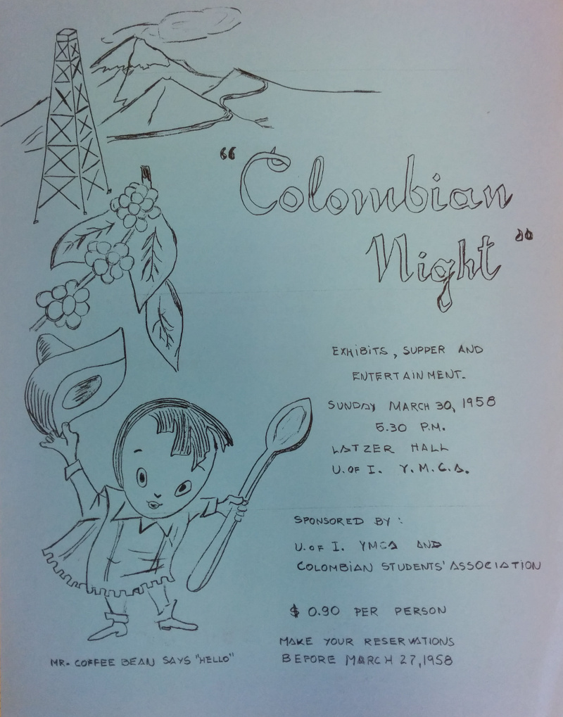 Of course, as the Colombian student population grew, the opportunities to represent and discuss diverse Colombian experiences came in time. Through the off campus Y.M.C.A., annual Colombian Nights were organized as early as 1953, to share music, images, and food from Colombia with the University community.