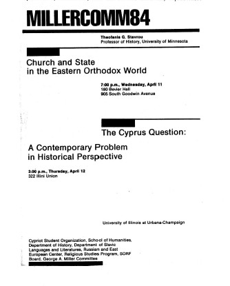 In 1982, the Cypriot Student Organization (CSO) formed as a resource for Cypriot students and as a means for Cypriot students to advocate for campus awareness of Cyprus on campus. So far, at least two publications from the CSO have been identified. Both CSO publications include student essays on Cypriot culture, history, and international politics, as well as student art.