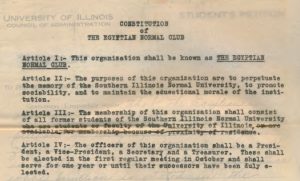 Like other clubs, the Egyptian Normal Club had a constitution and monthly meetings during the Fall and Spring terms. The Club organized campus events including a Thanksgiving Dance, annual picnics at Crystal Lake Park, and receptions for members. [9] [10] [11]