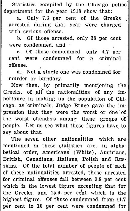 Dr. Alexopoulos was a regular Daily Illini reader and he wrote at least two editorials in defense of both the Greek nation and the Greek immigrant population of Illinois. In 1924 he wrote a response criticizing a disparaging comment on the current state of the Greek economy. Again in 1927, after a guest lecturer on campus (a judge) accused immigrant Greeks as causing recent increased crime in Chicago, Dr. Alexopoulos again wrote a detailed editorial with citations too.