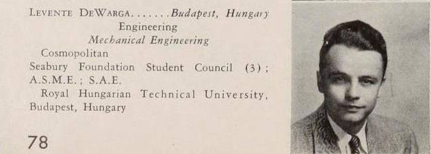 Mr. Levente DeWarga, (B.S. Mechanical Engineering, 1951), of Budapest, was active in Cosmopolitan Club too. In fact, Mr. DeWarga was involved in the Club soccer team. He started as a halfback for 1949-1950 team, and he became a co-captain for the 1950-1951 team.