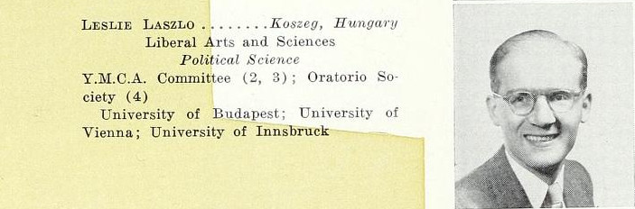 Mr. Leslie László, (B.A. Political Science, 1952), of Koszeg, was initiated into the international service honorary Phi Beta Kappa in 1952.