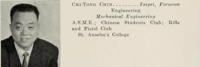 Other graduates included Mr. Joseph Ching-Fu Chow, (B.S. Mechanical Engineering, 1957; M.S. Mechanical Engineering, 1959), of Tainan Hsien, and Ms. Elaine Yen Chang, (B.A. Home Economics, 1958), of Taipei, who might not have left many records behind.
