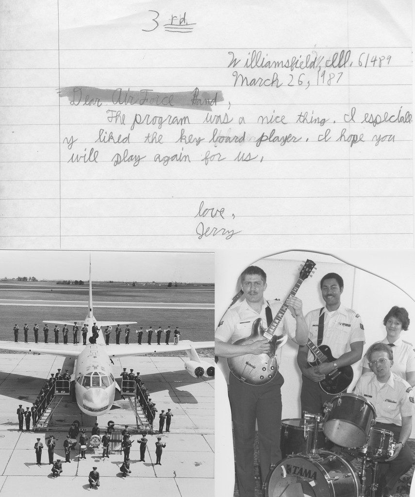 As 2015 was quickly winding down last month the Center acquired five cubic feet of administrative histories and records, photographs, correspondence, concert programs, news clippings, sound recordings, awards, and memorabilia documenting the musical legacy of Rantoul, Illinois’ Chanute Air Force Band between 1963 and 1985. The Chanute Air Force Band was established on September 9, 1941 and following the Air Force’s 1977 military band reduction order, the ensemble was eventually decommissioned in 1986. This military band was originally referred to as the Air Force Band of Chanute Field, but was later called the Air Force Band of the Midwest. For those individuals who are not familiar with the 505th Air Force Band which included a concert band, brass quartet, jazz band, and a rock band, Mike Lyons introduced his readers to this military ensemble in his ca. 1979 newspaper article, Air Force band can really rock it, by stating, “Put your B-1 bombers, F-16 fighters, and swing-wing F-111’s back in the hangar. Some of the best ‘flying’ in today’s Air Force is done by the 505th Air Force Band, stationed at Chanute Technical Training Center in Rantoul.” Throughout the ensemble’s tenure, the band performed for hundreds of Midwest community festivals, parades, school assemblies, educational programs, and concerts to highlight through music the Air Force’s contributions to the country in times of both war and peace. The Sousa Archives staff are expected to complete the arrangement and description of this exciting new collection later this spring.