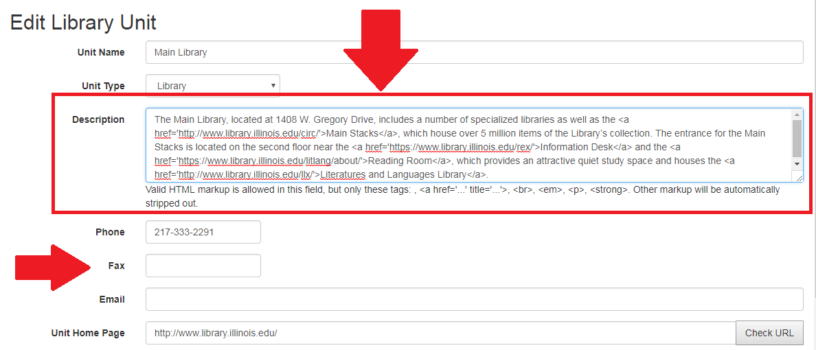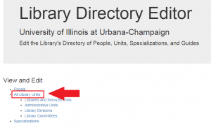 To edit the information, log in to Library Directory Editor and click on “All Library Units“.